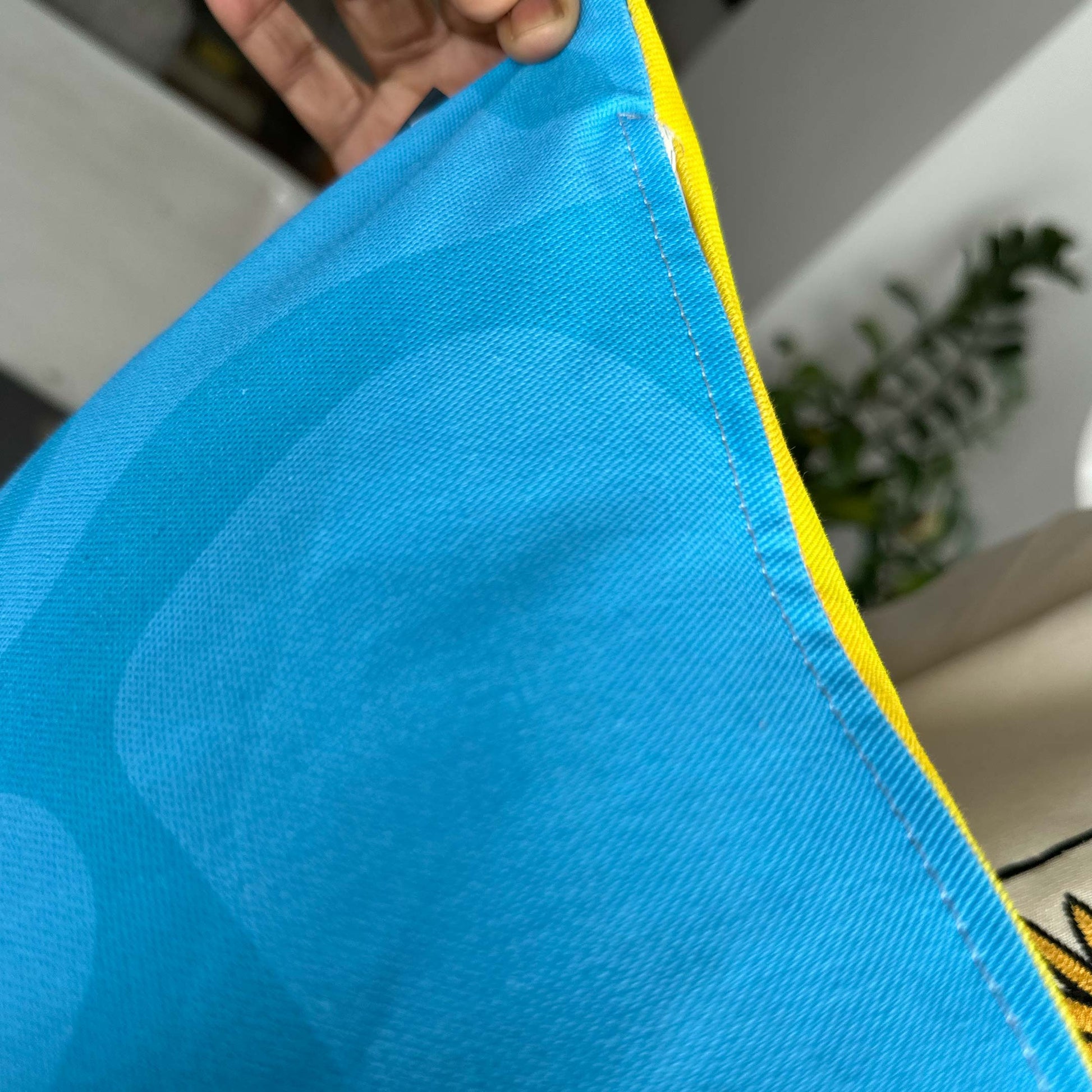 Camo Barbados BlueSkySun hand-drawn limited edition cushion. Our comfy cushion covers are digitally printed with a reverse side. Our bold designer cushions give you plenty of options to brighten your living room, depending on your mood that day.