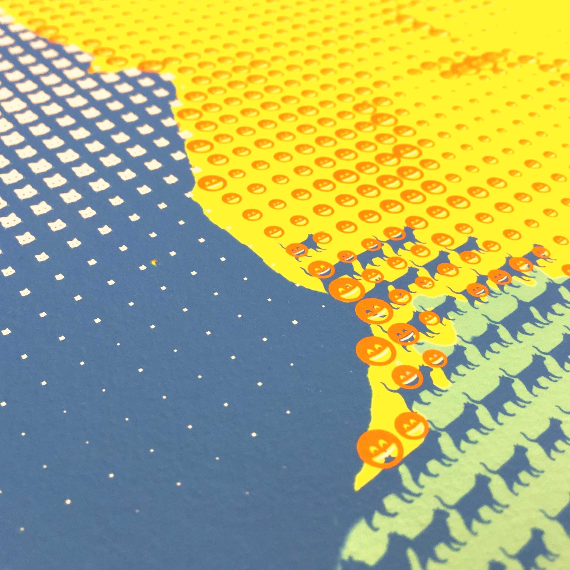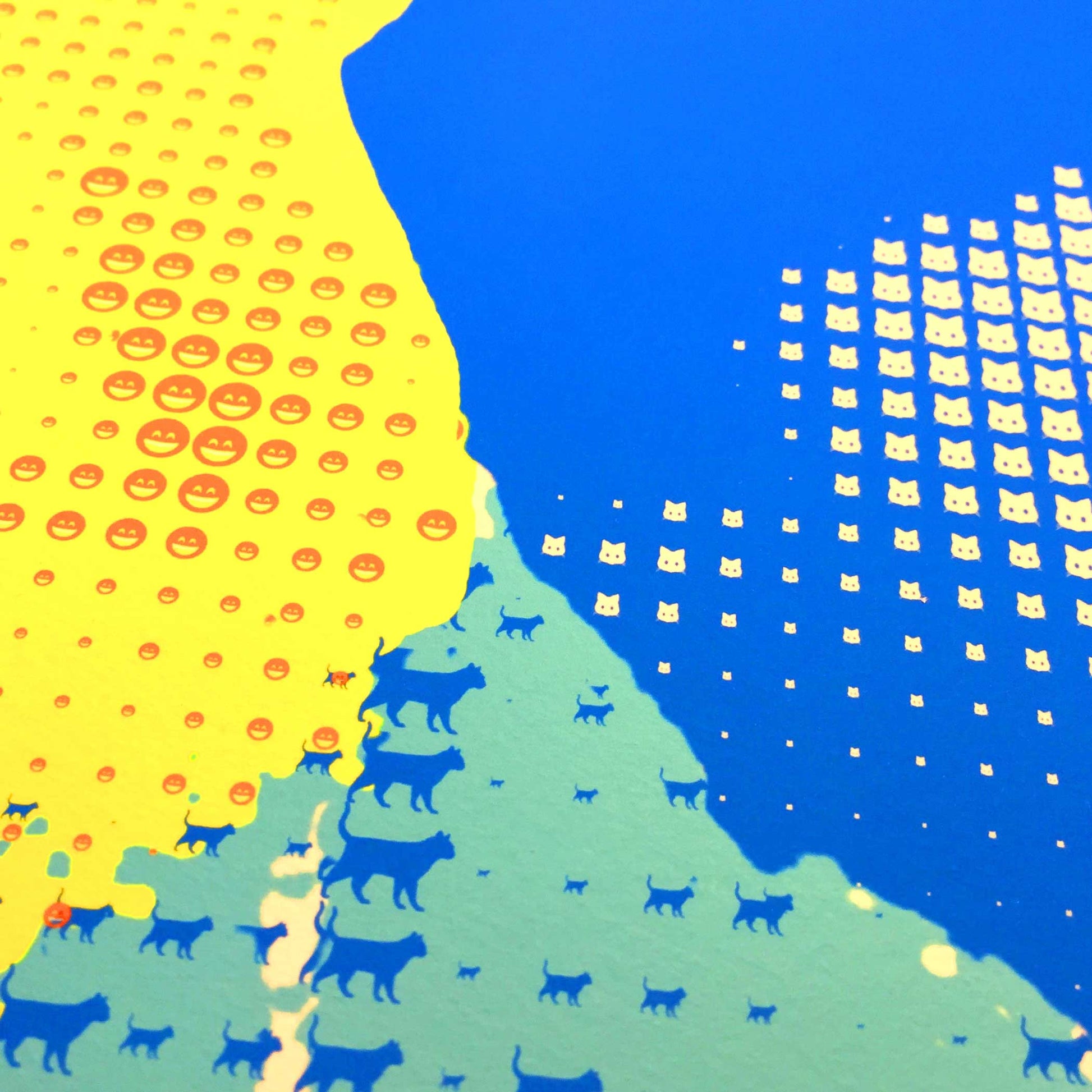 He now lives on in print, made with 1000's of emoji cats and smiley faces.