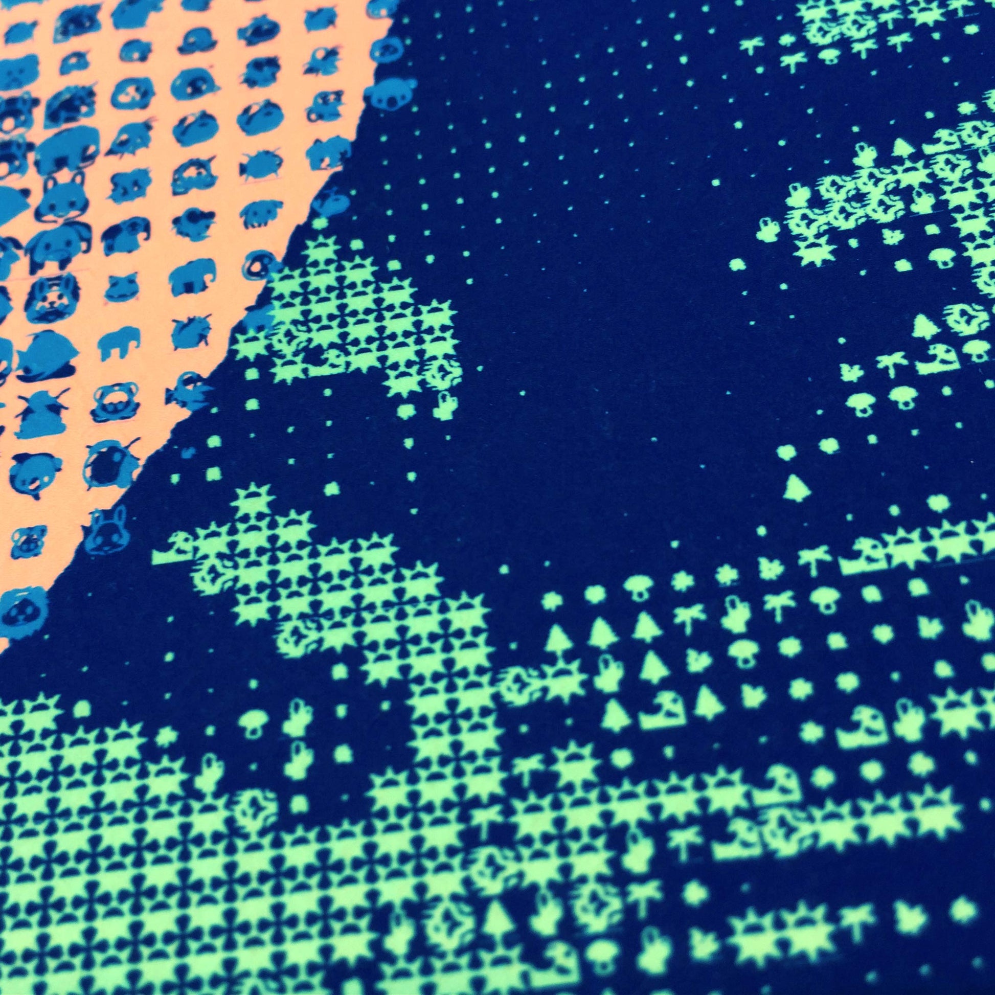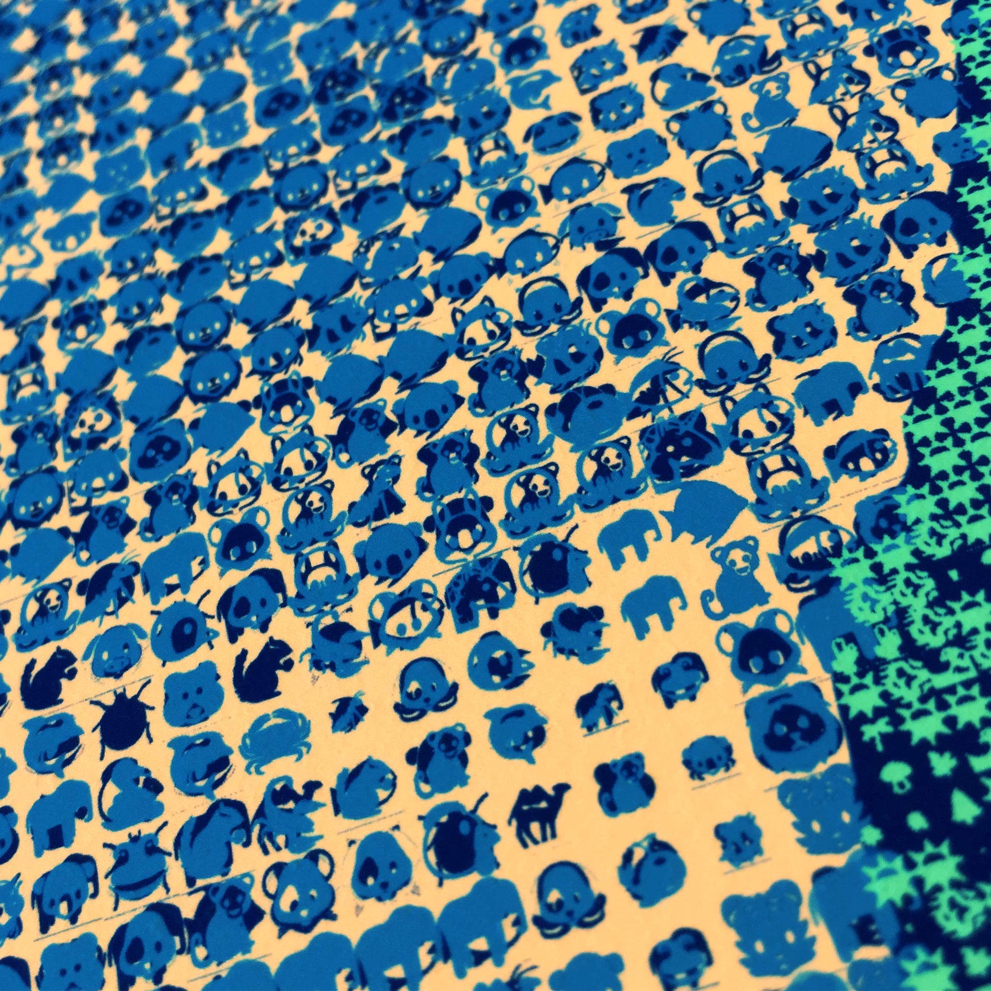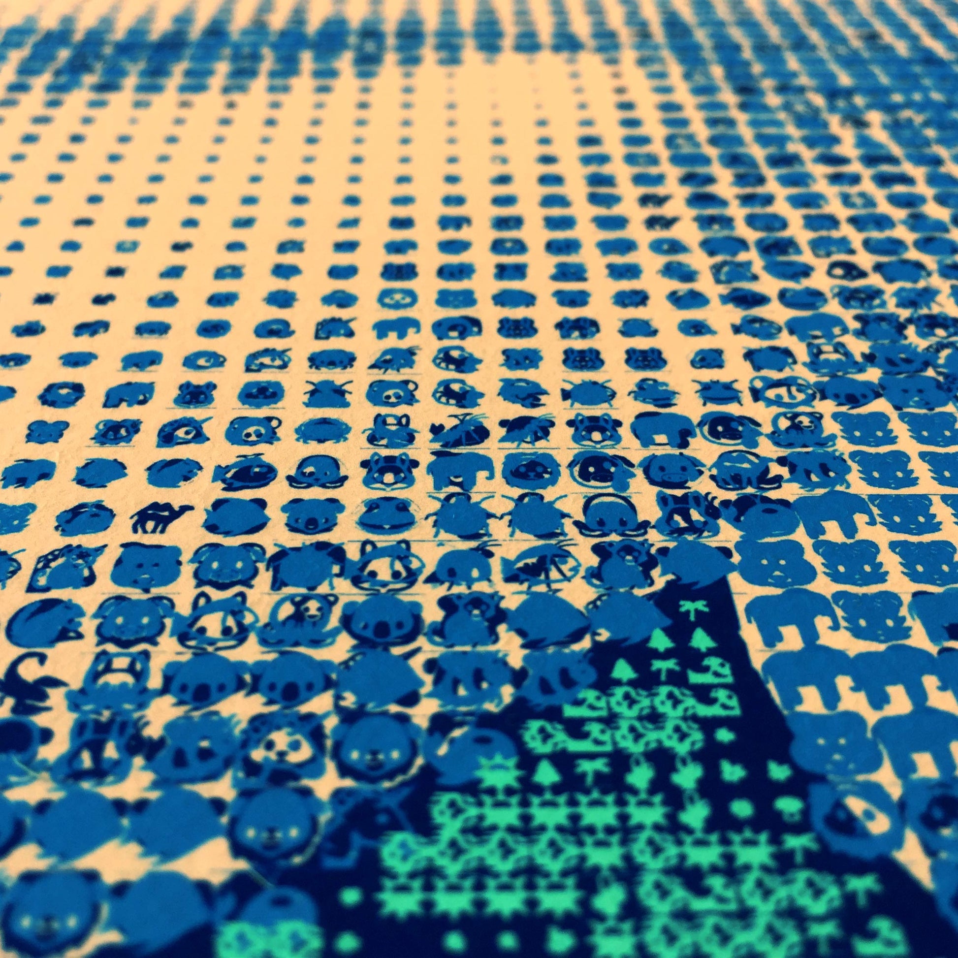 Made of 1000's or emoji animals, plants, and symbols of nature, all blended and overlayed as a halftone pattern to make this extra special emoji portrait.